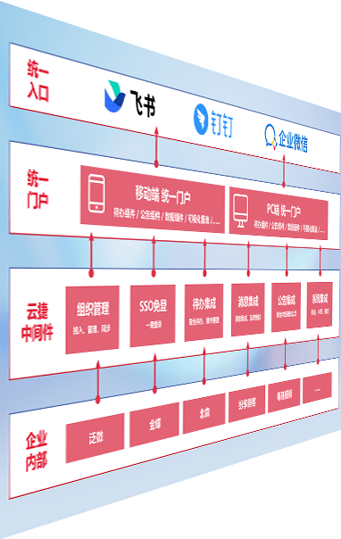 对协作平台提供支持服务,,,,支持企业应用与协作平台对接,,,包含组织同步、、、、消息集成、、待办集成等。。支持目前主流的协作平台:钉钉、、、企微和飞书。。